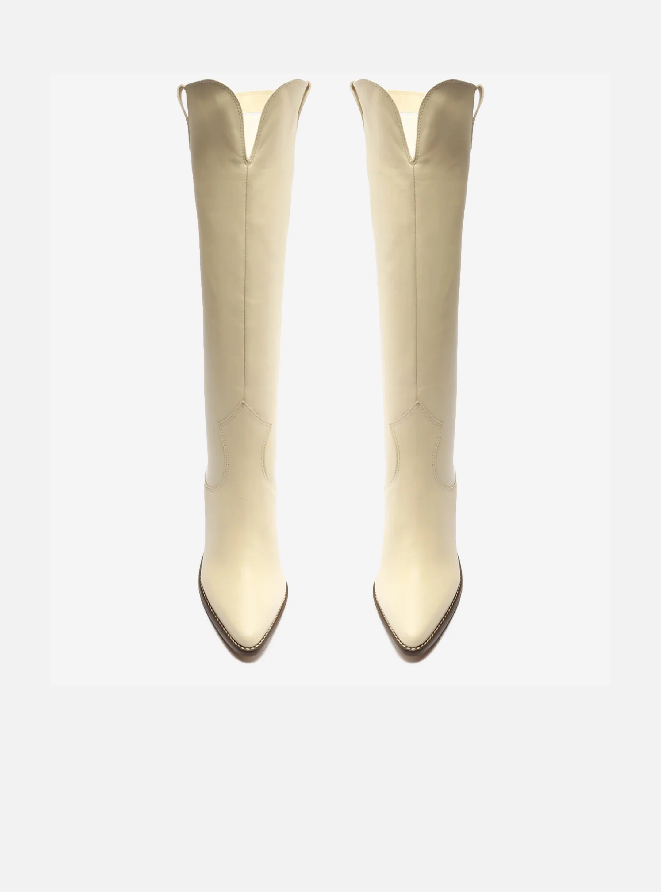 Show off your country girl side with Taylor Up Boot. You can't go wrong with this western boot in white leather, whipstitch details and curved edges.